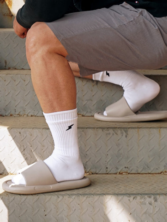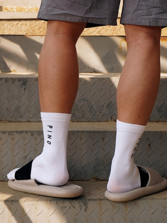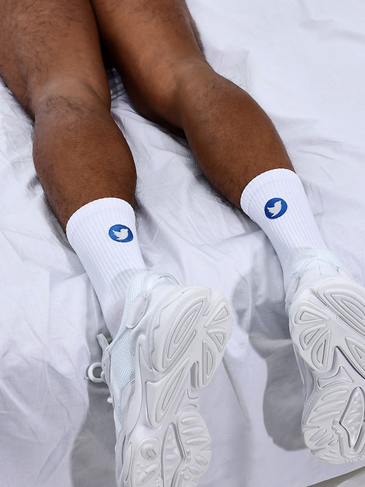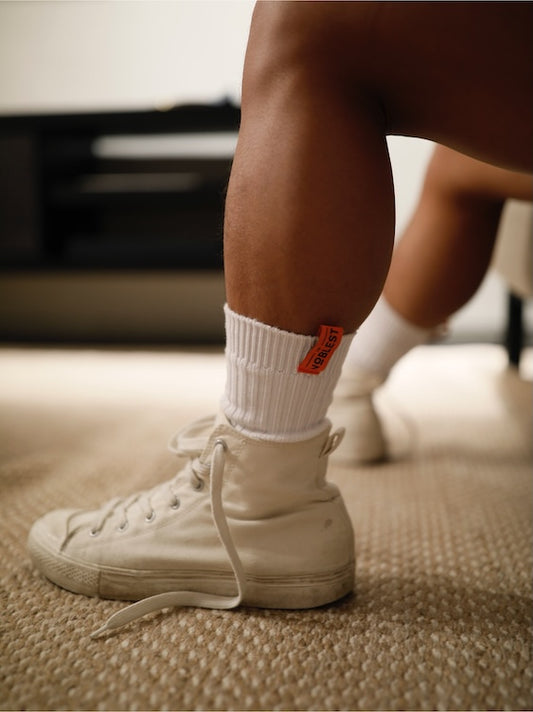 Men's White Crew Socks with Bold NOBLEST Orange Tag