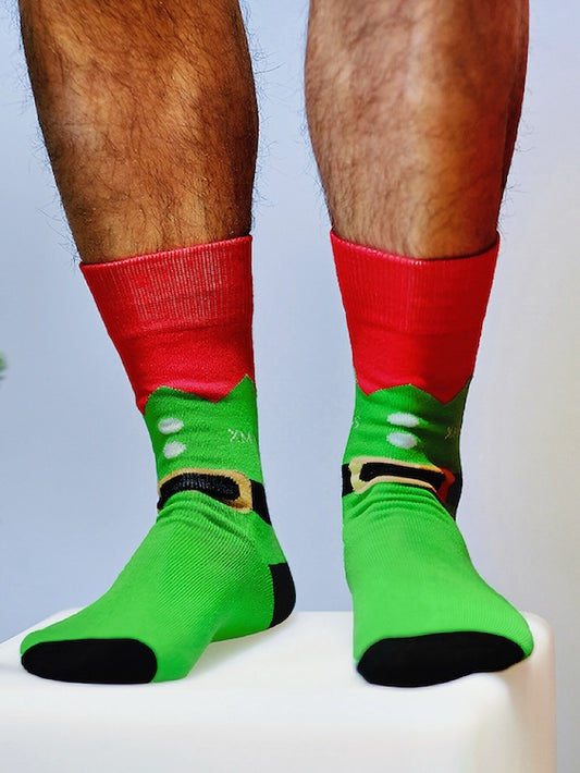 Mens Mid Calf Socks with Top Bttm Vers Prints