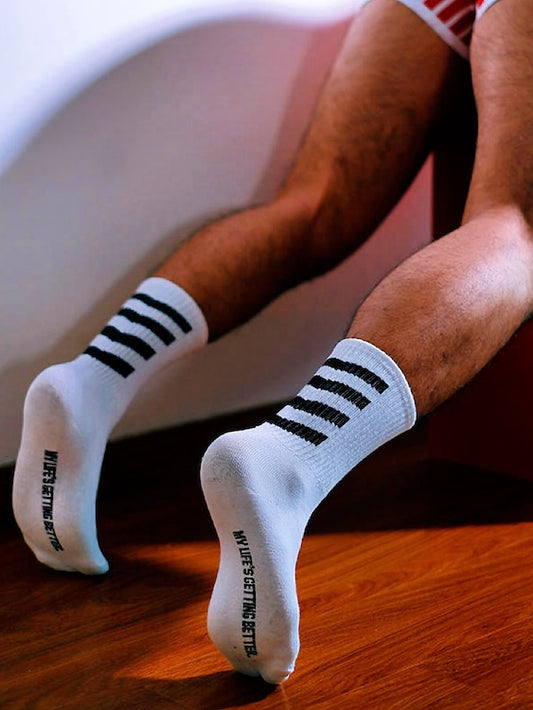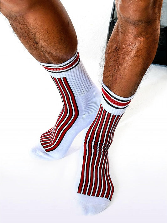 Men's Thick Crew Socks with Black and White Vertical Stripes