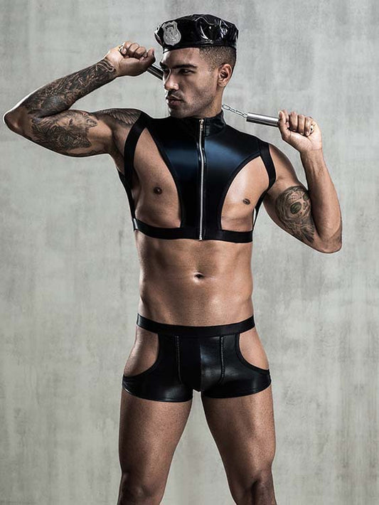 Men's Leather Bondage Set with Metal Rings for a Sexy and Dominant Look
