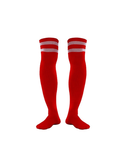 2 Pairs Of Men's White Crew Socks With Black And Red Stripes