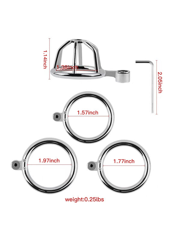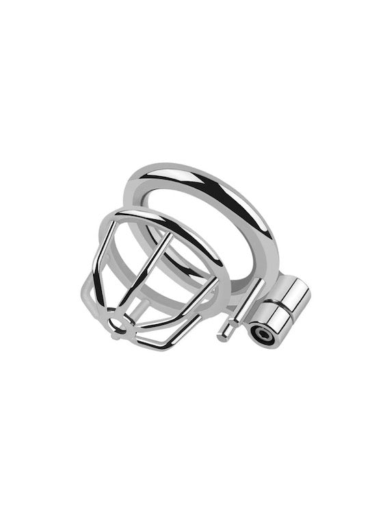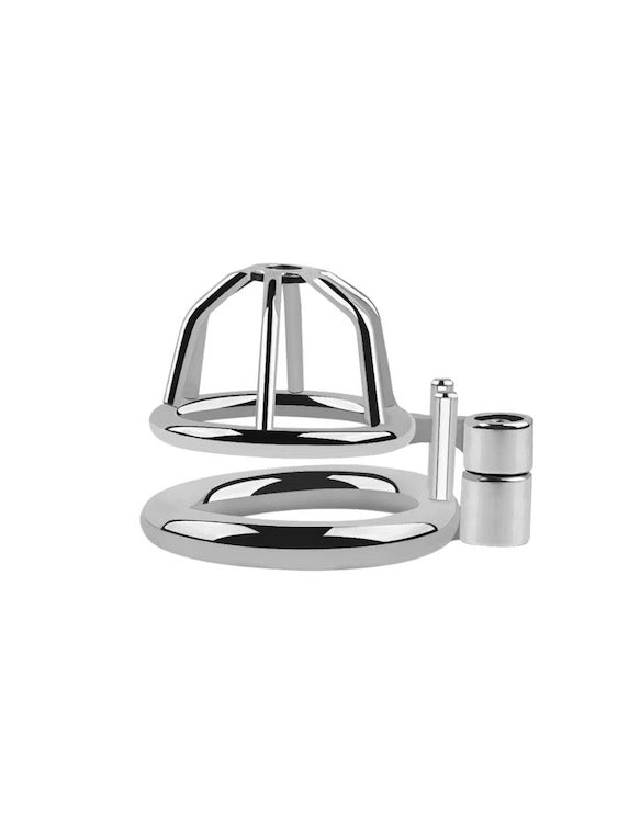 This Ultra Small Cock Cage for BDSM Gay Men is a stainless steel device for those who enjoy chastity play and BDSM. This cock cage is specifically tailored to meet the needs of gay males who seek extreme levels of confinement and control.